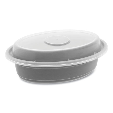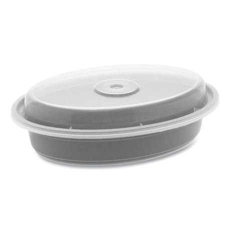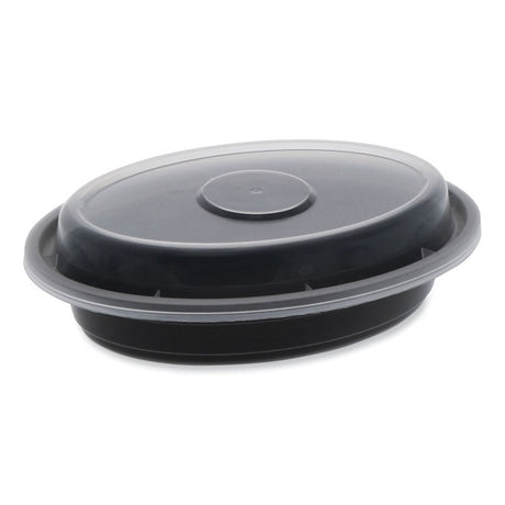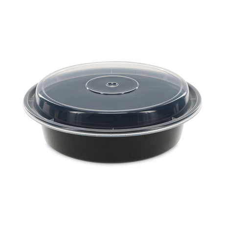 Newspring VERSAtainer Microwavable Containers, 24 oz, 7" Diameter, Black/Clear, Plastic, 150/Carton