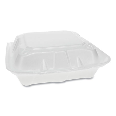 Vented Foam Hinged Lid Container, Dual Tab Lock, 8.42 x 8.15 x 3, White, 150/Carton