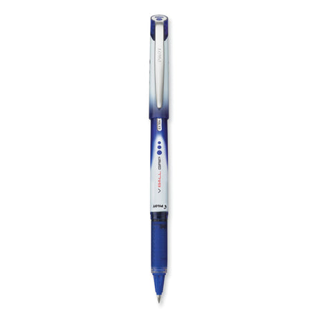 VBall Grip Liquid Ink Roller Ball Pen, Stick, Extra-Fine 0.5 mm, Blue Ink, Blue/White Barrel, Dozen