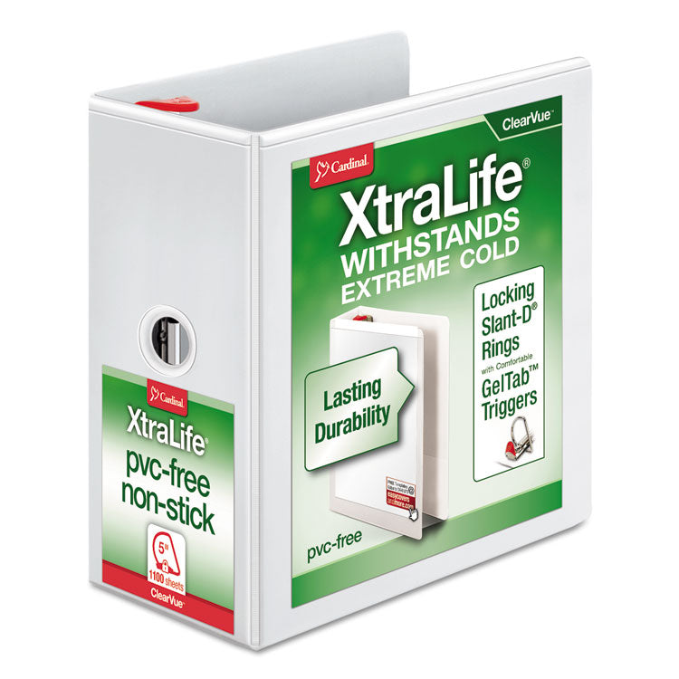 XtraLife ClearVue Non-Stick Locking Slant-D Ring Binder, 3 Rings, 5" Capacity, 11 x 8.5, White