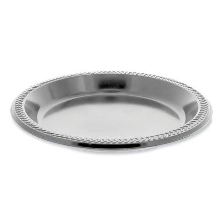 Masterpiece Plastic Dinnerware, 9" dia, White/Silver, 10/Pack