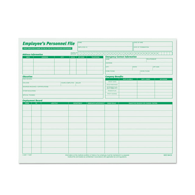 Employee s Record File Folder, Straight Tabs, Letter Size, Index Stock, Green, 20/Pack is backordered and will ship as soon as it is back in stock.