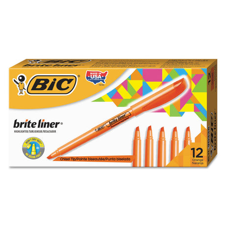 Brite Liner Highlighter, Fluorescent Orange Ink, Chisel Tip, Orange/Black Barrel, Dozen