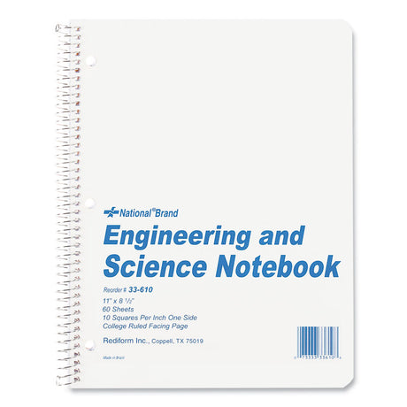 Engineering and Science Notebook, Quadrille Rule (10 sq/in), White Cover, (60) 11 x 8.5 Sheets