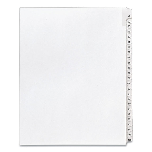 Preprinted Legal Exhibit Side Tab Index Dividers, Allstate Style, 25-Tab, 76 to 100, 11 x 8.5, White, 1 Set, (1704)