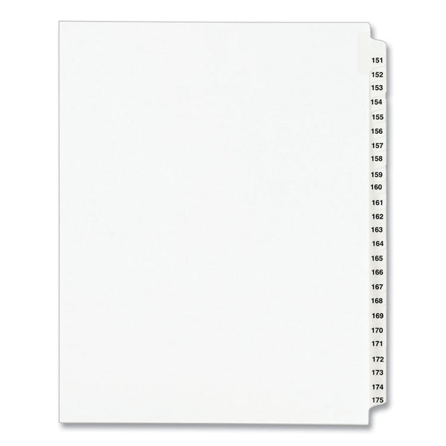Preprinted Legal Exhibit Side Tab Index Dividers, Avery Style, 25-Tab, 151 to 175, 11 x 8.5, White, 1 Set, (1336)