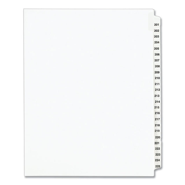 Preprinted Legal Exhibit Side Tab Index Dividers, Avery Style, 25-Tab, 201 to 225, 11 x 8.5, White, 1 Set, (1338)