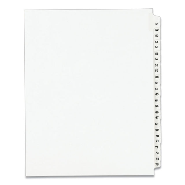 Preprinted Legal Exhibit Side Tab Index Dividers, Avery Style, 25-Tab, 51 to 75, 11 x 8.5, White, 1 Set, (1332)