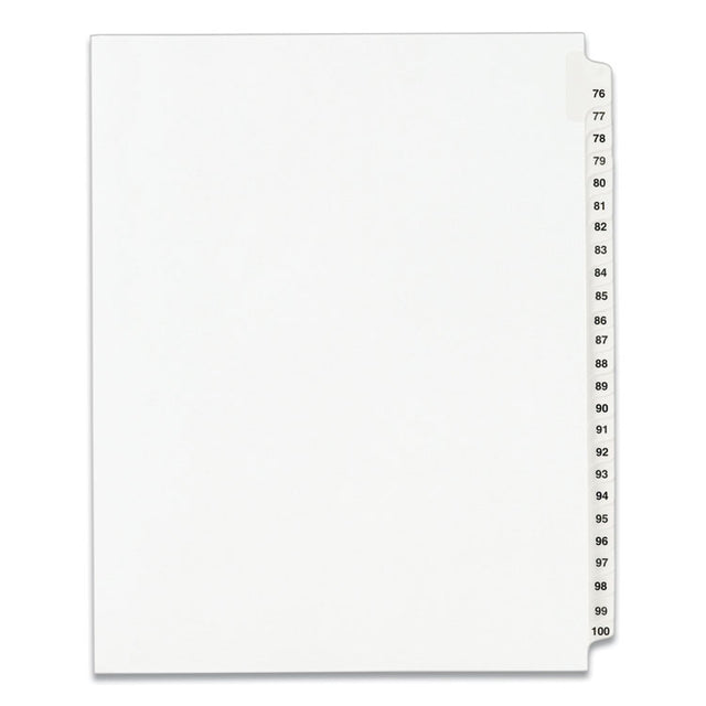 Preprinted Legal Exhibit Side Tab Index Dividers, Avery Style, 25-Tab, 76 to 100, 11 x 8.5, White, 1 Set, (1333)
