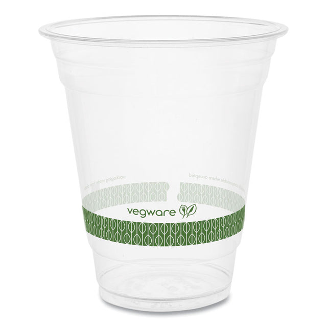 Plant-based clear cup, to fit Vegware s 96-Series lids. For cold drinks, desserts, fruit, salads, or healthy snacks. Made from PLA, a renewable material made from plants. Clear for visibility, with Vegware messaging in green. Award-winning quality by Vegware, made from plants. Commercially compostable where accepted. Cup Type: Cold Cup Interior Volume Capacity: 12 oz Material(s): Polylactic Acid (PLA) Color(s): Clear/Green.