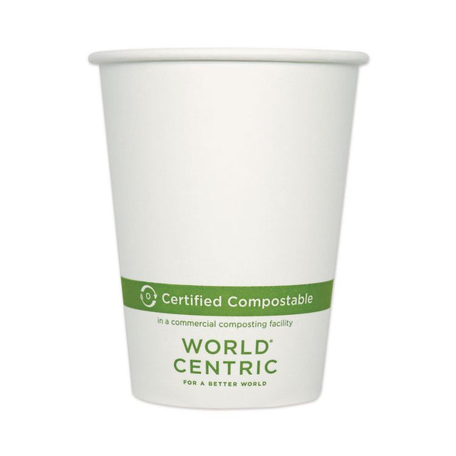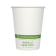 Bio-lining made from plants creates a moisture barrier. Suitable for liquids up to 220 F and freezer safe. Great for warm beverages like coffee, tea and hot cocoa. 100% compostable in two to four months in a commercial composting facility. Not microwavable. Cup Type: Hot Cup Interior Volume Capacity: 12 oz Material(s): Paper Color(s): White.