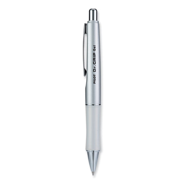 Dr. Grip is the first truly ergonomic writing instrument. A unique balanced design and a comfortable grip help alleviate writing fatigue, while the smooth ink formula provides an exceptional writing experience. Available in fine point with black G2 gel ink. Silver Barrel. Pen Sub-Brand & Product Family: Dr. Grip Limited; Pen Type: Gel Pen; Pen Style: Retractable; Pen Tip Type: Conical.