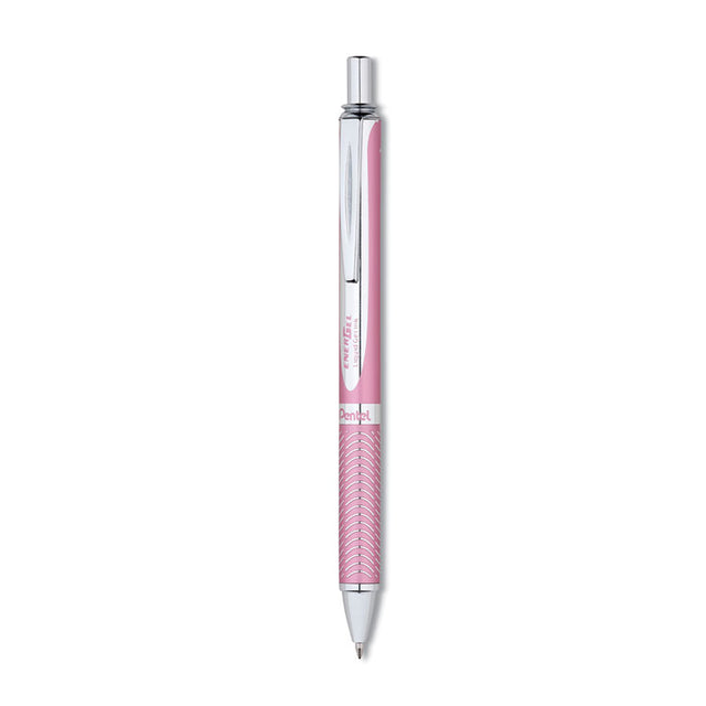 The Pentel EnerGel Alloy RT retractable liquid gel pen is an exquisitely designed writing instrument for those who want to make a statement. High performance ink technology No Smears, No Smudges, No Globs. Distinctive, textured grip provides greater writing comfort. 0.7mm metal tip writes medium lines. Pink Barrel. Pen Sub-Brand & Product Family: EnerGel Alloy RT; Pen Type: Gel Pen; Pen Style: Retractable; Pen Tip Type: Conical.