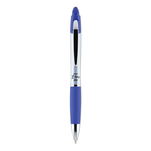 Z-Grip MAX Ballpoint Pen, Retractable, Medium 1 mm, Blue Ink, Silver/Blue Barrel, 12/Pack