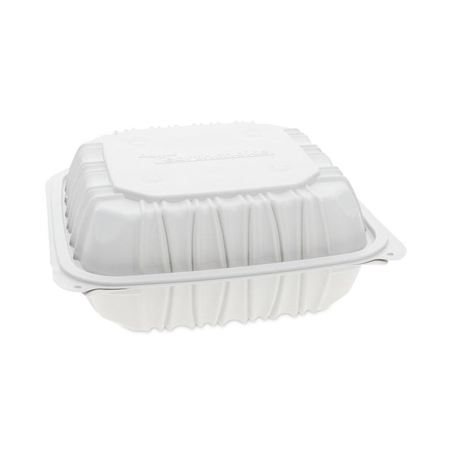EarthChoice Vented Microwavable MFPP Hinged Lid Container, 8.5 x 8.5 x 3.1, White, Plastic, 146/Carton