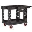Heavy Duty Plus Utility Cart, Plastic, 2 Shelves, 6 Bins, Capacity, 26.5 x 48.78 x 34.81 , Black
