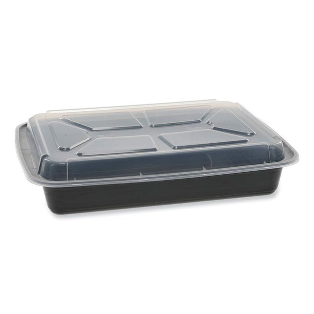 Newspring VERSAtainer Microwavable Containers, Rectangular, 58 oz, 8.5 x 11.5 x 2.5, Black/Clear, Plastic, 150/Carton