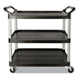 Three-Shelf Service Cart, Plastic, 3 Shelves, 200 lb Capacity, 18.63" x 33.63" x 37.75", Black
