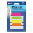Ultra Tabs Repositionable Tabs, Margin Tabs: 2.5" x 1", 1/5-Cut, Assorted Neon Colors, 24/Pack