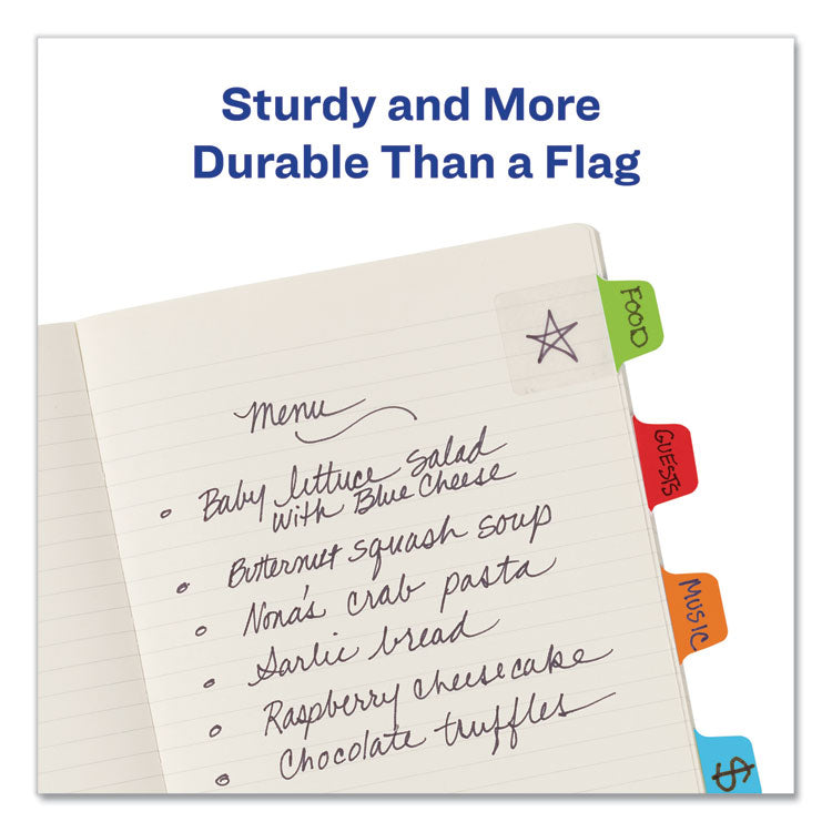 Sturdy, self-adhesive repositionable tabs that make indexing, marking, referencing and separating documents quick and easy